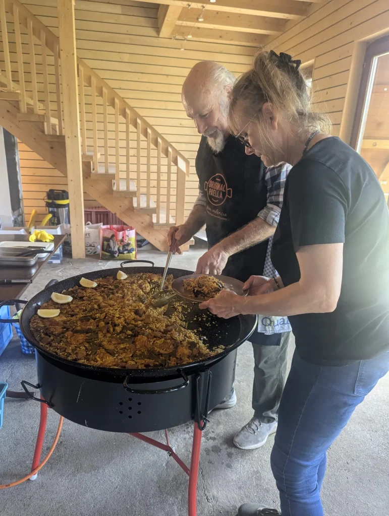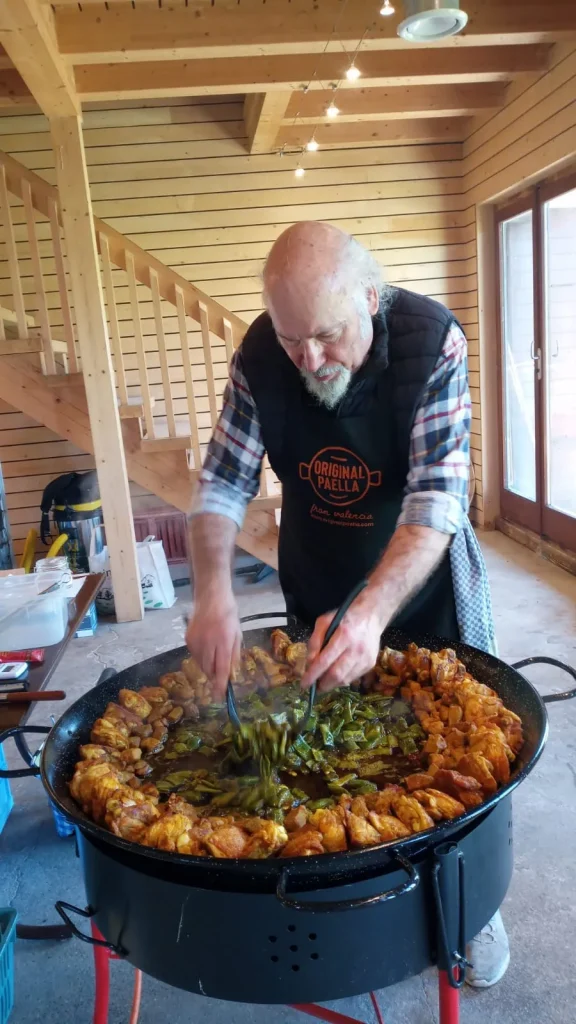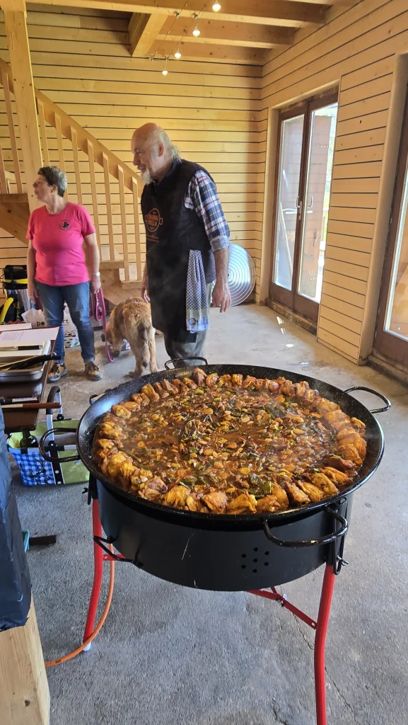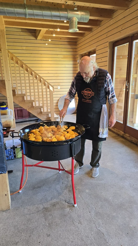 Et puis… de retour au chalet, une odeur incroyable flottait déjà dans l’air… Christian nous avait préparé une délicieuse paella. Bon, d’accord, je n’ai pas eu le droit d’en manger (injustice !), mais j’ai bien senti que les humains se régalaient.